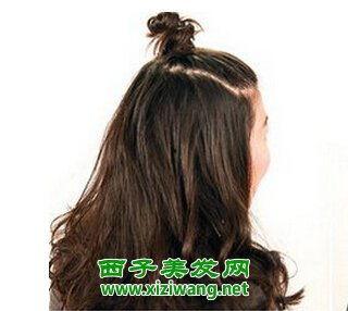 将扎好的头发向上提,形成一个丸子形状。用发夹将丸子固定在头顶。